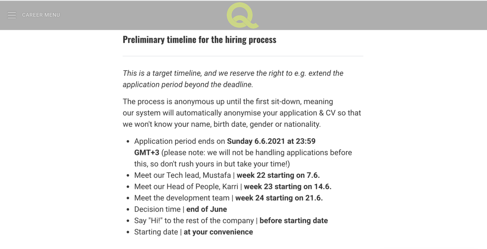 Answering potential applicants’ questions allows them to decide whether they want to apply. It is possible that you receive fewer applications. However, the candidates who apply will send a more targeted application, making it easier for you to choose the right person.