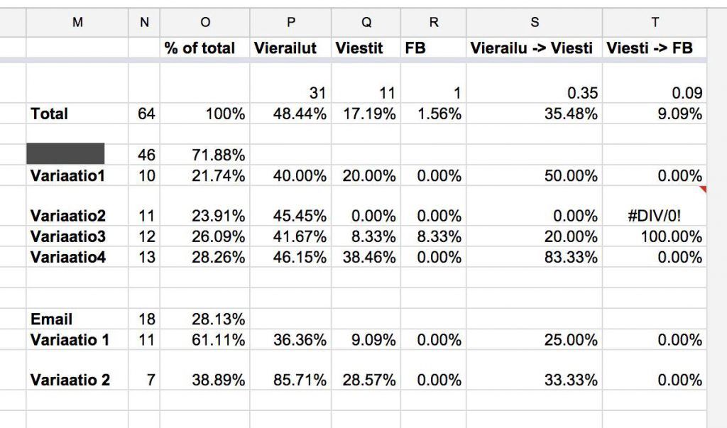 - Tracking for analysis. We created a semi-automated Google Spreadsheet tracking for analysis and iteration, and also focused to track the whole funnel which was answer -> FB friendship -> date.