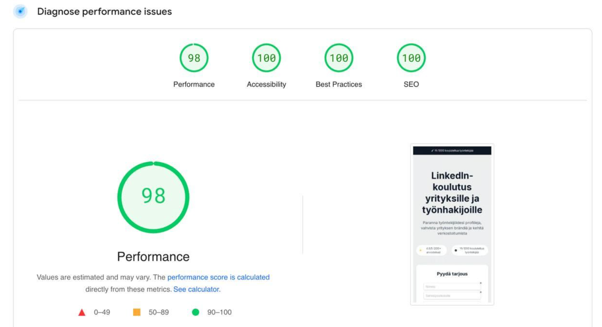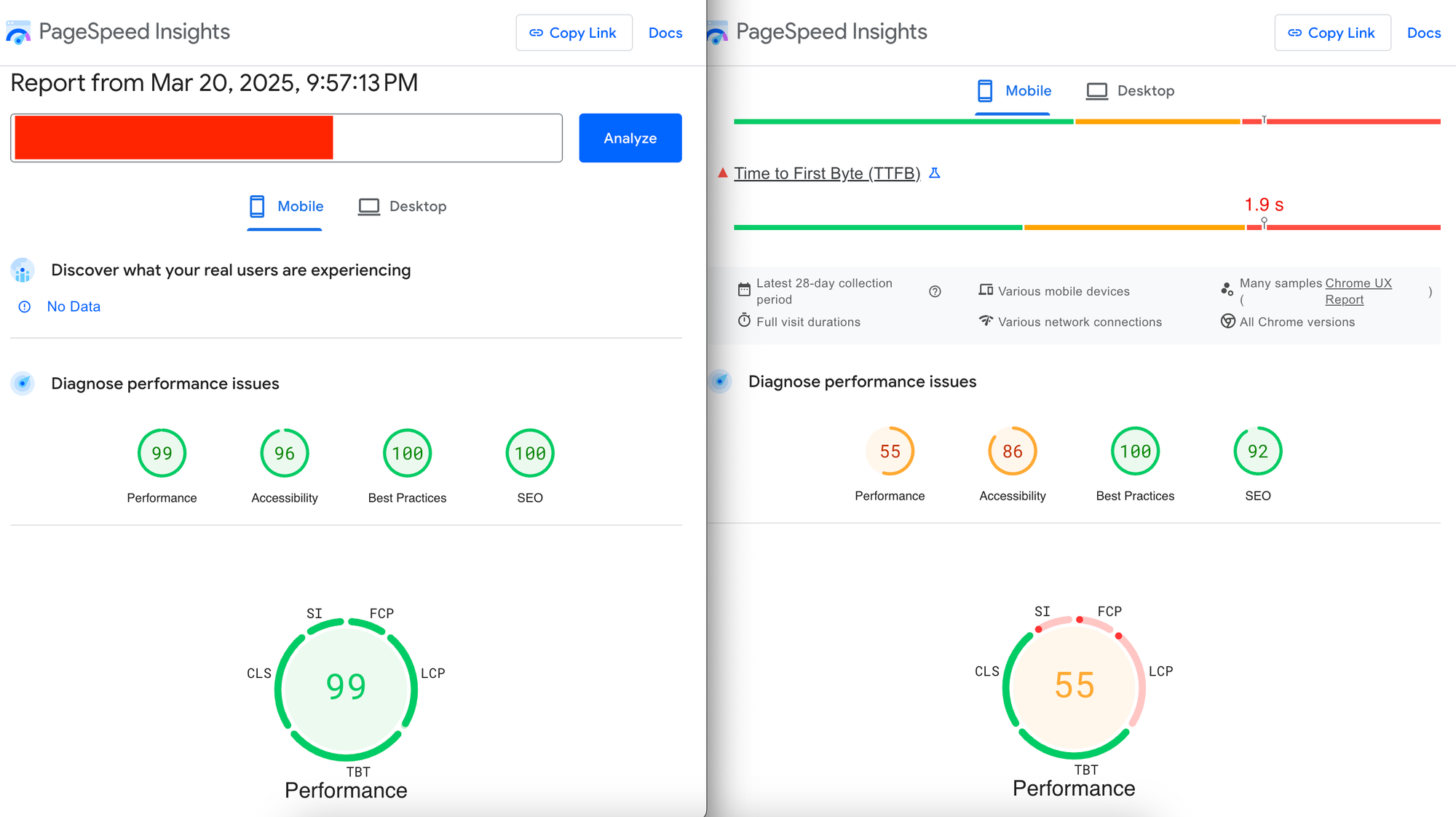 I’m getting 90+ PageSpeed Insights scores out of the box, without tweaking endlessly. It’s the kind of performance that actually moves the needle in SEO, not just for bots, but for real users.